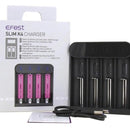 El cargador de batería EFEST SLIM K4 Quad USB-C es el cargador más nuevo de la serie K del mundialmente famoso EFEST. Con 4 canales de capacidad de carga USB-C y corte inteligente automático. El SLIM K4 es capaz de cargarse a 1A por canal con 2 baterías o 0.5A usando 4 canales. La luz indicadora inteligente le permite saber cuando la celda está en estado de carga. El indicador cambia a un color blanco sólido para avisarle que la batería ha terminado el ciclo de carga.
