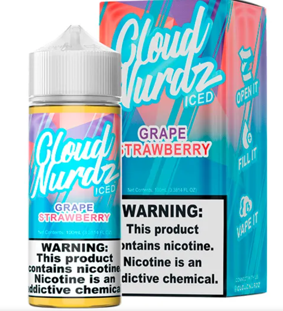 Cloud Nurdz Grape Strawberry Iced: es una deliciosa mezcla de uvas maduras directamente de la vid, deliciosas frutillas rojas y trocitos de hielo.