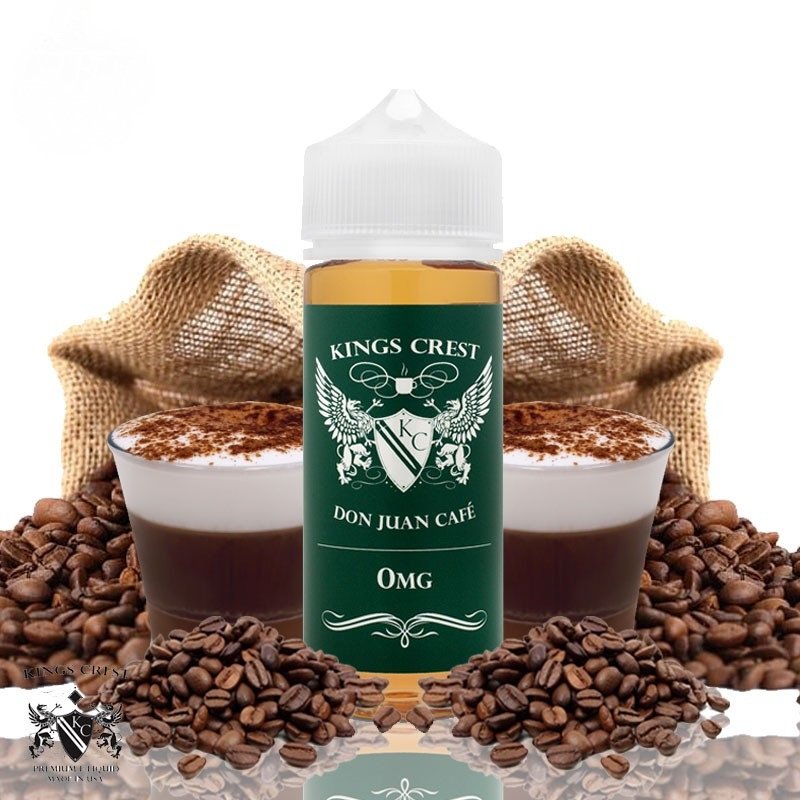 Líquido King's Crest Don Juan Café 120 mlLíquido Don Juan Café de Kings Crest, sigue la receta del Don Juan original con un sabor intenso a un café mocaccino americano con toques de chocolate que te enamorará.Especificaciones d...