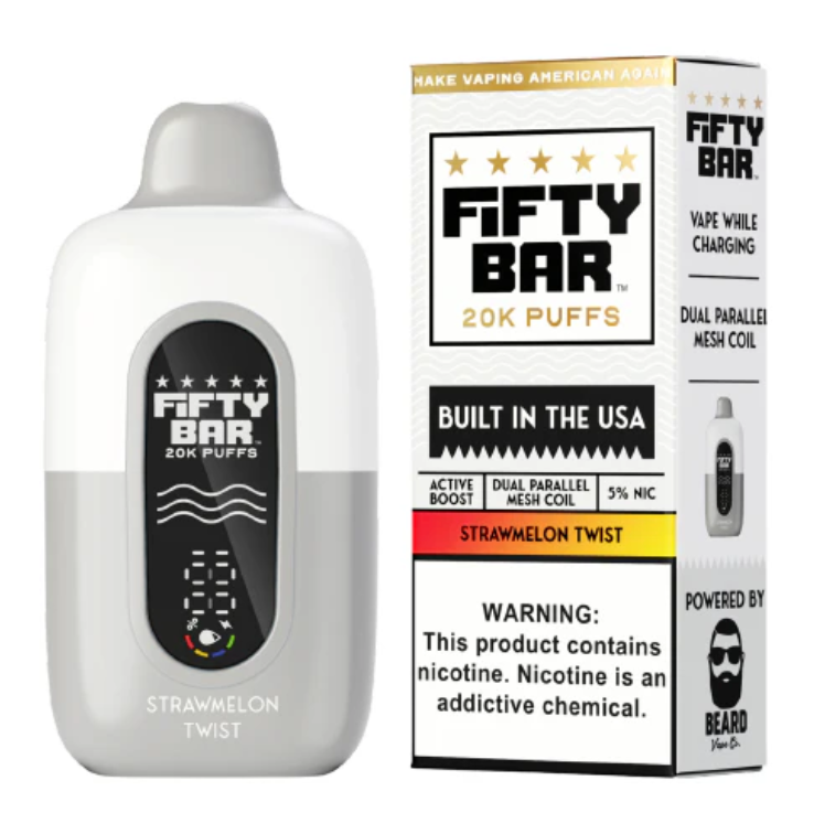 Pod descartable Fifty Bar V2 20000 puffs Strawmelon Twist (origen USA)White Series - Strawmelon Twist: Una combinación perfecta de frutillas y melón jugosos y dulces.El Fifty Bar V2 20000 Puff Desechable establece un nuevo está...
